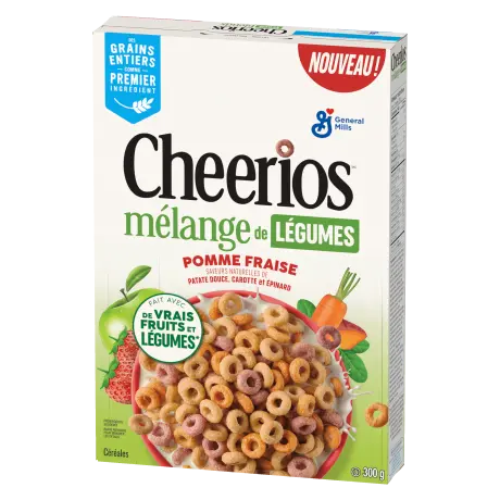 - *Les céréales CheeriosMC mélange de LÉGUMES sont faites de vraie purée de fruits et de vrais légumes déshydratés. Voir la liste complète des ingrédients. Ce produit n'est pas destiné à remplacer les fruits ou les légumes dans un régime alimentaire